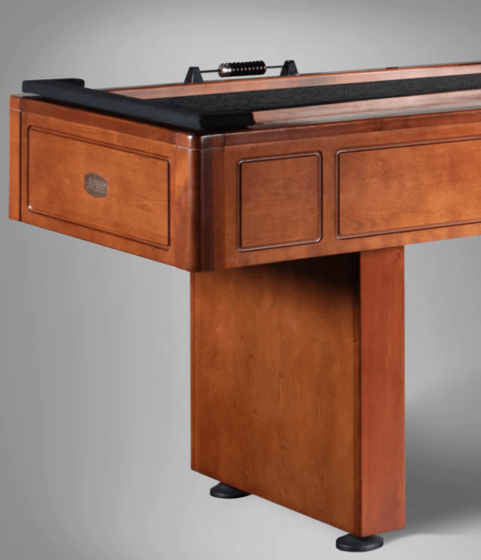 Storage: All Legacy shuffleboards include the Perfect Drawer. This hidden drawer is mounted under the table and glides out to reveal your shuffleboard accessories.