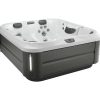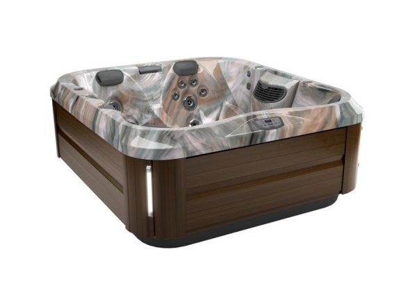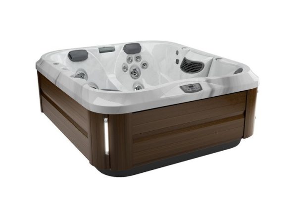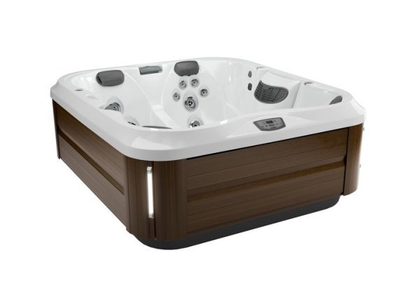 The compact J-325™ hot tub is perfect for patios or small spaces Boasts PowerPro® jets Features a PowerPro® therapy seat Set apart ProFinish™ cabinetry with optional corner accent lighting HydroSoothe™ no-splash jetted massage pillow Low profile for easy entry