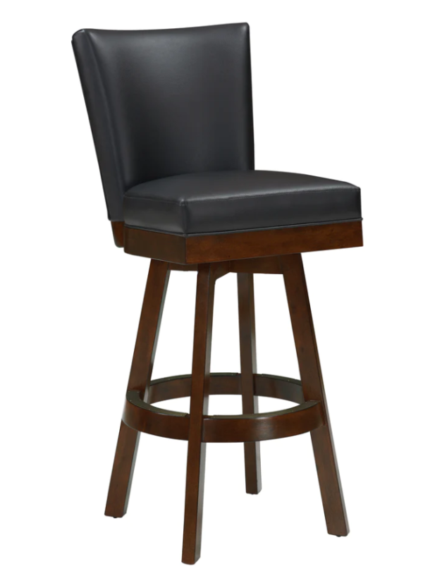 Classic Flex Back Barstool complements and blends with all traditional furniture. The simple strong lines with upholstered black faux leather, seat swivel are what makes this a great addition to any room in your home. Pair it with a bar, pub table or right up to your kitchen counter.Design