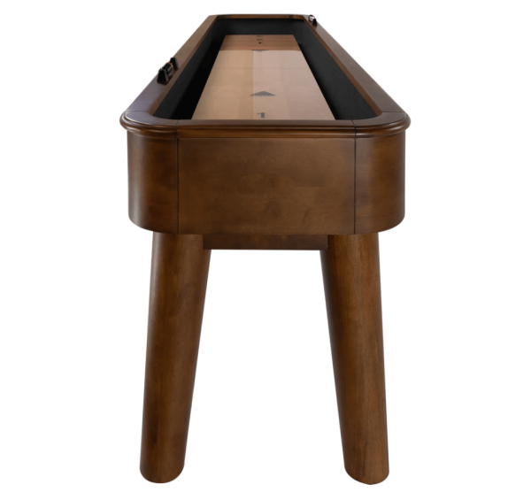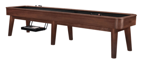 With its sleek mid-century modern design the 14’ Collins Shuffleboard is sure to be a show stopper. The angled legs and rounded corners of the cabinet make this shuffleboard table one of the most desirable designs in the industry. The lifetime warrantied 20” wide playfield with 4 scoring zones on this model is made of tongue and groove constructed North American Poplar and coated with a 1/4” nearly indestructible polymer coating. As always, this Legacy brand shuffleboard comes with everything you need including pucks, wax, a playfield brush, cover and our patented Perfect Drawer for hidden storage.Climate Adjusters: Legacy Shuffleboards include climate adjusters to ensure a level and accurate game.