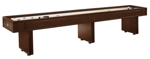 Get ready for countless hours of fun and excitement with the Sterling 14 ft Shuffleboard. For storage of your pucks, brushes, and other accessories, the Sterling Shuffleboard table provides the Perfect Drawer, a glide in storage drawer mounted under the table. The shuffleboard playing field is 3″ x 20″ wide with 4 scoring zones and is made with North American plantation grown yellow poplar. The Sterling blows away the competition in quality and durability and is backed with Legacy’s lifetime warranty. Legacy recommends purchasing the optional light kit for 2 overhead lights and the score unit. Sterling Shuffleboard is pre-wired to add both.Climate Adjusters: Legacy Shuffleboards include climate adjusters to ensure a level and accurate game.