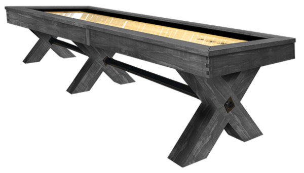 The Durango Shuffleboard Table is made from Solid Pine and features natural characteristics of live edge wood along with band-saw distressing and rustic bolt accents on the legs. All Olhausen Shuffleboards are hand-crafted at our 250,000 sq. ft. manufacturing facility in Portland, TN.