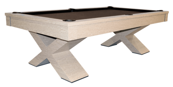The Encore Pool Table is made from Wood Veneers, with Solid Wood rails, flat panel aprons and unique “X” style legs. All Olhausen Pool tables are hand-crafted at our 250,000 sq. ft. manufacturing facility in Portland, TN and feature Accu-Fast Cushions and our Lifetime Warranty.