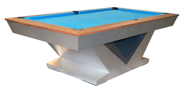 The Landmark Pool table features modern style enclosed solid wood rail system with flat paneled apron with pedestal base legs in brushed aluminum. All Olhausen Pool tables are hand-crafted at our 250,000 sq. ft. manufacturing facility in Portland, TN and feature Accu-Fast Cushions and our Lifetime Warranty.