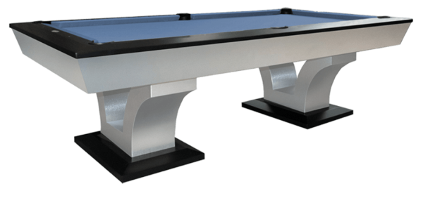 The Luxor Pool table features modern style enclosed solid wood rail system with flat paneled apron with pedestal base legs in brushed aluminum. All Olhausen Pool tables are hand-crafted at our 250,000 sq. ft. manufacturing facility in Portland, TN and feature Accu-Fast Cushions and our Lifetime Warranty.