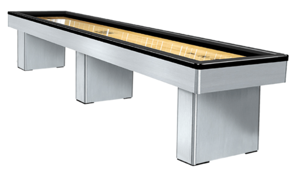The Monarch Shuffleboard Table is made from Solid Wood and features flat paneled cabinet and pedestal base legs. All Olhausen Shuffleboards are hand-crafted at our 250,000 sq. ft. manufacturing facility in Portland, TN.