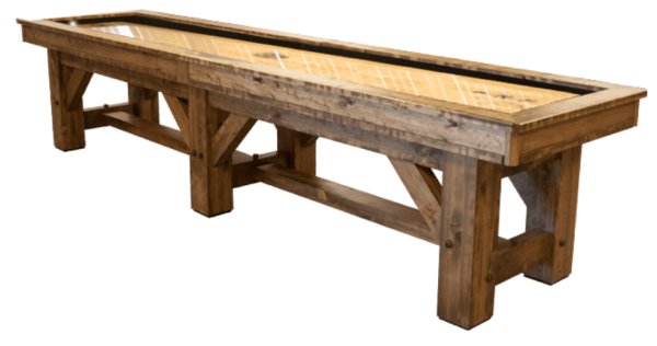 The Timber Ridge Shuffleboard is made from Solid Pine and features rustic characteristics of Rough-Sawn Pawn. The rail and apron are made with reclaimed wood from old barns and out buildings sourced from the North East United States. All Olhausen Shuffleboards are hand-crafted at our 250,000 sq. ft. manufacturing facility in Portland, TN.