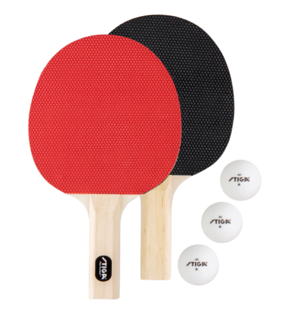 USATT approved table tennis set that includes two hardbat rackets and 3 white 1-star ITTF regulation size balls (40mm) made from tough materials that will keep your family playing for years. This set was created for beginners looking to build their table tennis skills. This sturdy table tennis racket has a straight handle and 5-ply blade with short pips rubber.