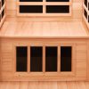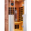 The Sun & Soul SUN100 One Person Sauna is equipped with enhanced audio sound, digital keypad controls, color light therapy, built-in reading lights, and therapeutic heating technology.