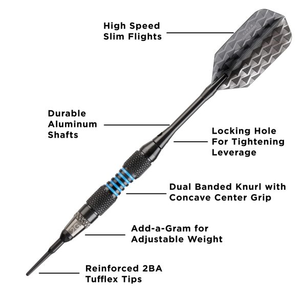 Viper Bobcat Adjustable Soft Tip Darts Blue Rings 16-18 Grams