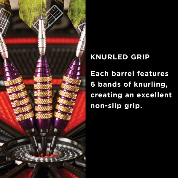 For proof that great things come in small packages, look no further than the Viper Spinning Bee Soft Tip Darts. These super short barrels feature heavily knurled bands and are great for people who want a small dart with pinpoint accuracy. They also feature aluminum spinning shafts to let incoming darts slide past. To top it off, each dart is adorned with a signature Bee holographic flight. This soft tip dart set comes with three fully assembled darts, a carrying case, and three extra 2BA Tufflex II Tips.