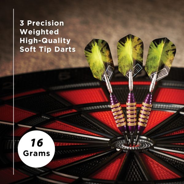 • Soft tip dart set comes with three fully assembled darts, a dart case, and three spare 2BA Tufflex II dart tips