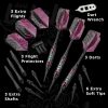 - Includes six flights, three extra nylon replacement shafts, 9 2BA Tufflex II Tips, Dart mechanic repair tool, three flight protectors and a Deluxe Dart Pal Case.