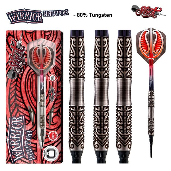 If bravery is half the battle, Hautoa – courageous and daring in Te Reo Māori – is your other half. Inspired by its elder brother, Shot Darts Warrior 3, this centre weighted, 80% tungsten barrel has a slim nose with a front shark fin grip. It’s followed by a scalloped band, precision placed to give you perfect centre grip placement and pure confidence. Warrior Hautoa is adorned with cinder grip™ in a contemporary tribal tattoo design, which adds superfine traction and control in distinctive Shot Darts style. The source of your strength is also a challenge to play at your best.